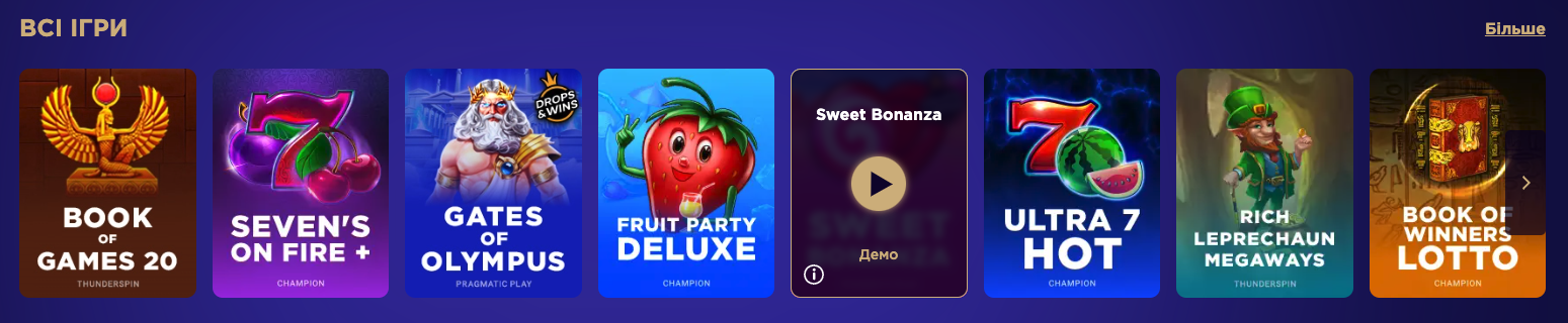 Слоти будь-яких провайдерів, якщо ставка по них перевищує 100 грн.